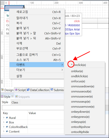 Click [Add Event] and choose an event. (For the events available for each component, see API Guide.)