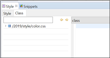 Click the Class tab on the Style view, and click the newly added external CSS.